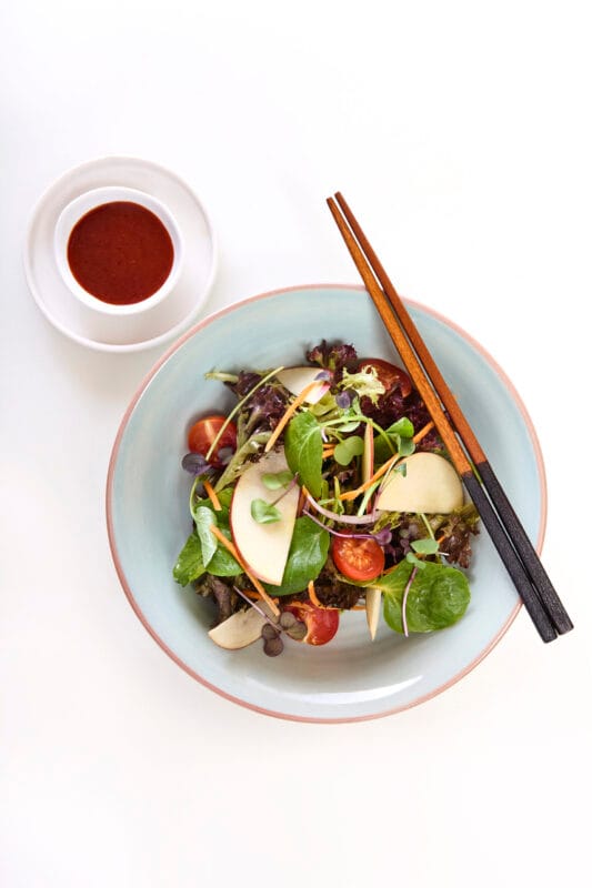 This simple Korean-style salad is all about fresh, crisp veggies brought to life with a punch of spicy-sweet gochujang dressing.